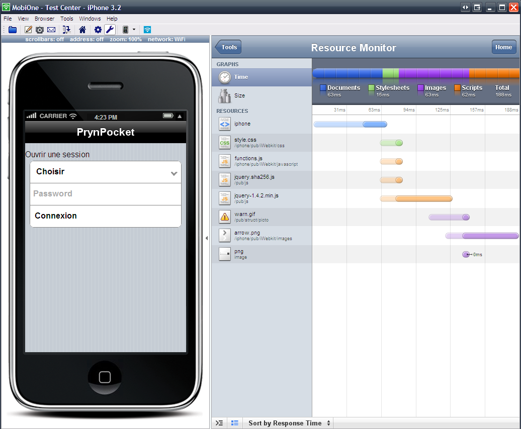 Je m’étais donc résigné à utiliser Safari redimensionné à une taille à peu près identique à celle de l’iphone jusqu’à ce que je tombe sur Mobi One et son Test Center.